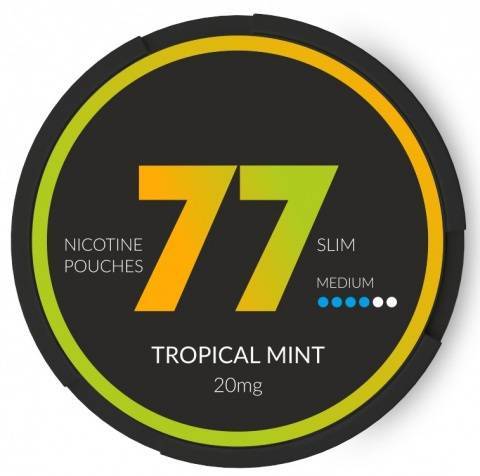 77 Tropical Mint Medium – The aroma of fresh tropical fruits combined with sweet mint is enchanting with its intensity and carefully selected combination of flavours! Here with a nicotine content of 16mg per gram.