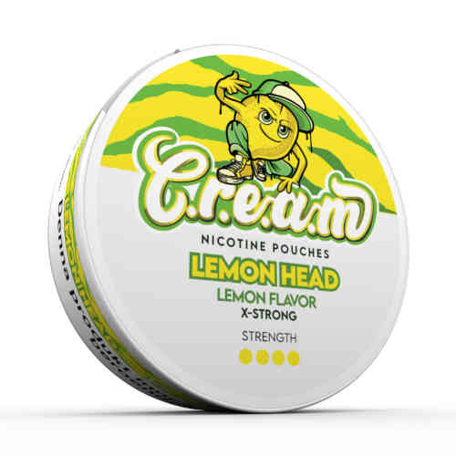 C.R.E.A.M Lemon Head X-Strong– Experience the zesty, tangy taste of Lemon Head. This flavorful pouch delivers a refreshing and invigorating kick with 12mg of nicotine per pouch. Each can contains 20 slim-fit, soft moisture pouches, ensuring a smooth and lasting nicotine boost. Simply put, it’s a fresh nicotine pouch with a vibrant lemon flavor that you will love, made in Sweden.