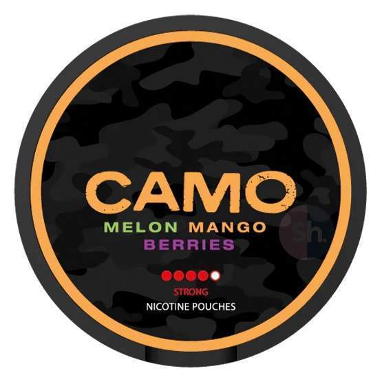 CAMO Melon Mango Berries White Slim Portion 25mg/g – Feel the fresh and sweet taste of Melon combined with Mango and Berries with a strong kick! The well-balanced moisture gives a quick release of both flavour and nicotine. The slim-sized nicotine pouches fits well and discreet under the lip.