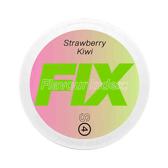 FIX Strawberry Kiwi S4 – This tobacco free snus has a sweet Strawberry flavor combined with a dash of Kiwi that makes the taste make you think of a frozen strawberry slushie!