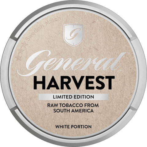 General Harvest White Portion – A light character of tobacco with hints of cocoa, leather, horseradish and slightly nutty with hints of rosehip. A large and soft prill that is moist on the surface for a quick and strong taste release.