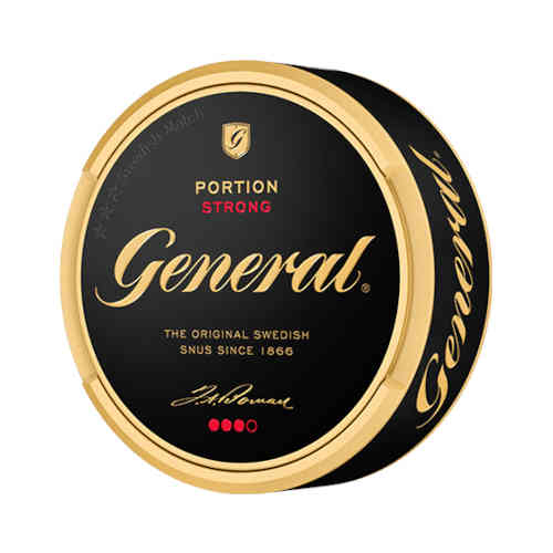 General Original Portion Strong – A heavy and spicy tobacco taste with notes of bergamot and licorice, along with green herbs and leather. A full sized pouch that is moist on the surface for a quick and strong flavour release.