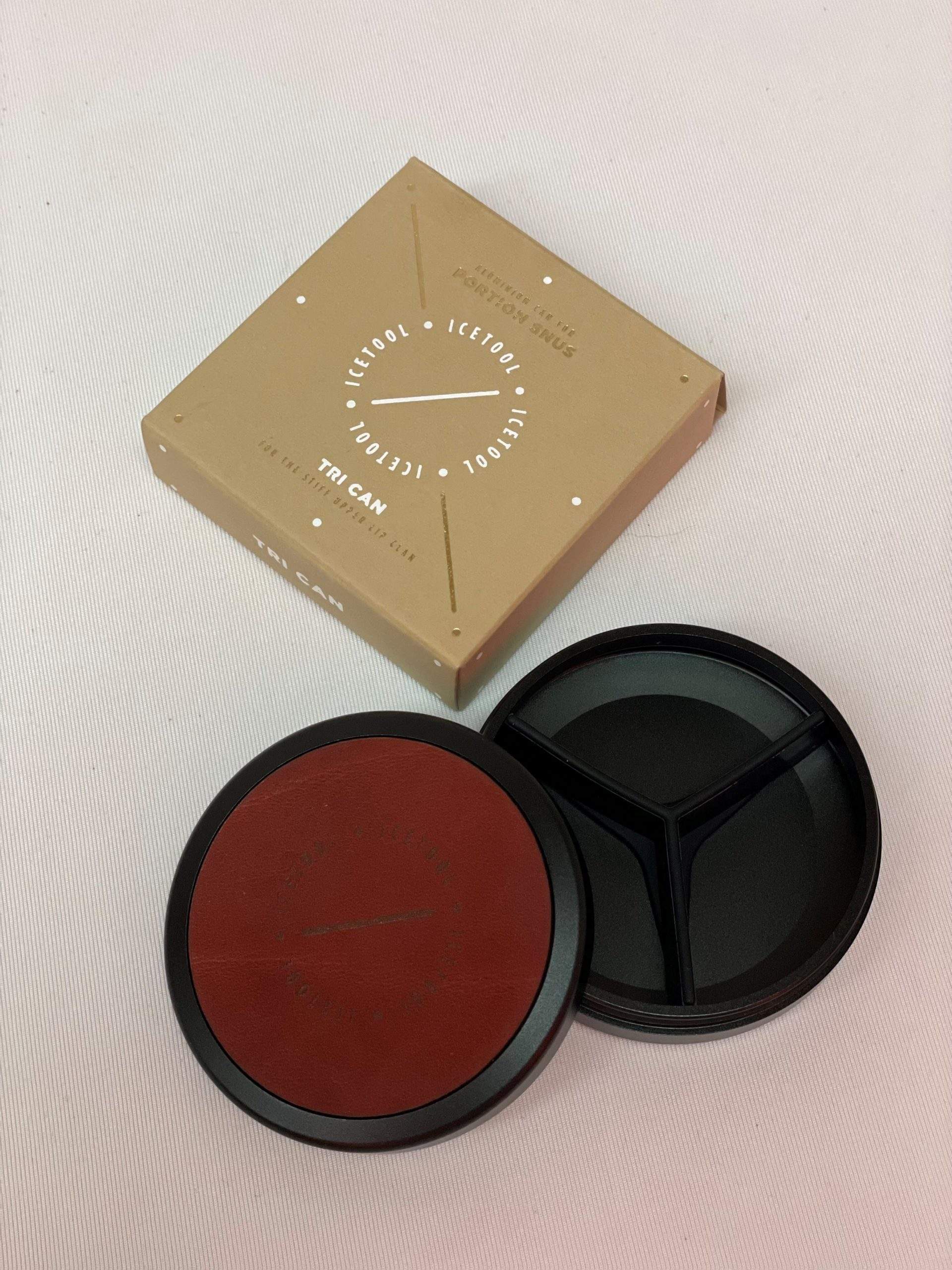 Icetool Tri Can Leatherface Chestnut/Black – This is Icetool Tri Can Leatherface, our brand new snus can with a divider, decorated with some high-quality leather from Tärnsjö Garveri in Sweden.