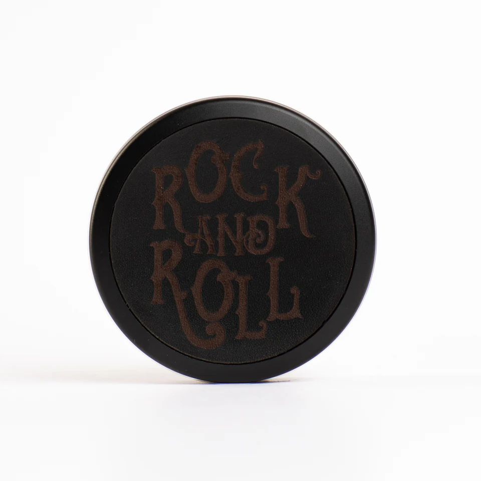 Black leather on black aluminum is the choice of a true rocker! This is Icetool Tri Can Leatherface with Rock and Roll engraving, our brand new snus can with a divider, decorated with some high-quality leather from Tärnsjö Garveri in Sweden.