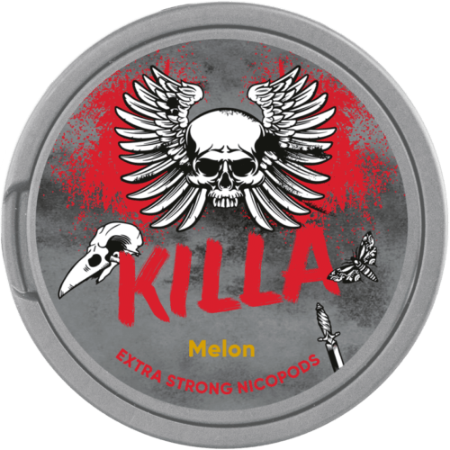 Killa Melon Extra Strong – This all white tobaccofree nicotine pouch comes from the killapods family. In slim pouches that fit discreetly under your lip this will give you a sweet and fresh flavour of melon.