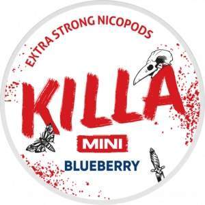 Killa Mini Blueberry – The new smaller pouch makes its even more comfortable to use while keeping the strenght of Killa. This all white tobaccofree nicotine pouch comes from the killapods family. In Mini pouches that fit discreetly under your lip this will give you a sweet and fresh flavour of blueberries.