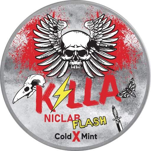 Killa Niclab Flash Cold x Mint 4mg – This all white tobaccofree nicotine pouch comes from the killapods family. In slim pouches that fit discreetly under your lip this will give you a breath freshening flavor of Menthol with a hint of Tobacco flavour.