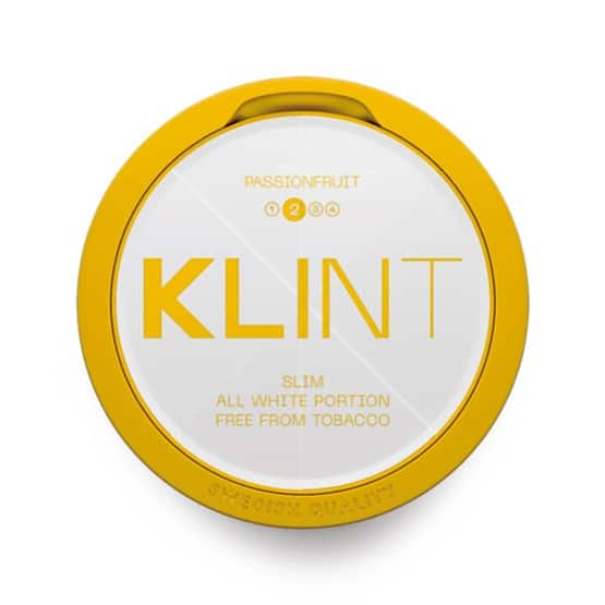A new taste from Klint with a flavor of juicy, sweet passion fruit. This all-white product contains natural fibers, nicotine and water water, stabilizers and flavourings.