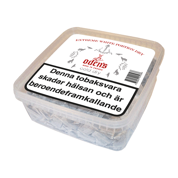 Oden’s Cold Dry Extreme White 500 gram – This is the bigpack for you! Extremely strong nicotine experience in dry portions and with lower moisture content in the snus. Also runs smaller than regular ‘White’ portions – and lasts even longer. Normal-sized portion format for a familiar snuff feeling behind the lip.