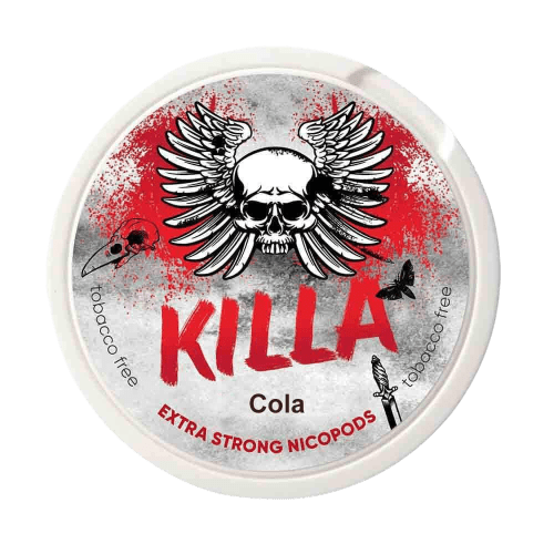 Killa Cola – This all white tobaccofree nicotine pouch comes from the killapods family. In slim pouches that fit discreetly under your lip this will give you a sweet taste of Cola!