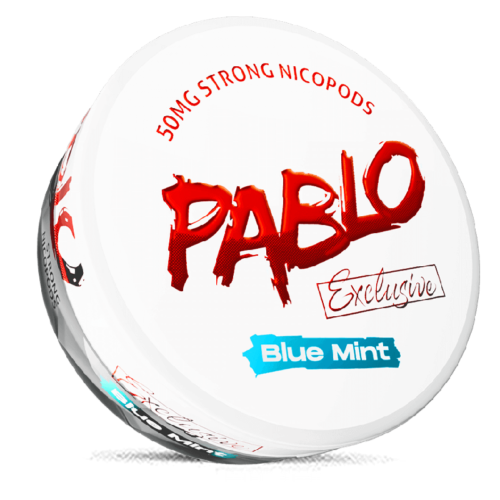 Pablo Exclusive Blue Mint 50mg – This is as strong nicotine pouch from Killapods! This all white tobacco free pouch has a very strong nicotine kick of 50mg/g and comes with a fresh and sweet flavor of fresh Mint!