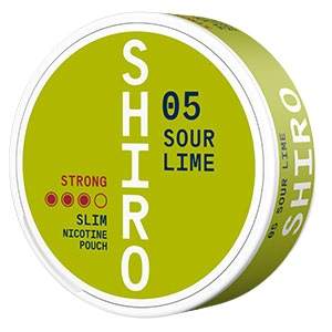 Shiro 05 Sour Lime – Sour Lime has a refreshingly zesty lime flavour and sour notes. Shiro offers white nicotine pouches without tobacco. This product is made of plant fiber with added nicotine extract. Slim pouches are discreet with balanced moisture, optimized for comfortable feeling under the lip.