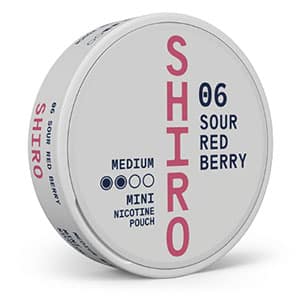 Shiro 06 Sour Red Berry Mini –This pouch has a fresh taste and aroma of red berries with hint of sour candy. Shiro offers white nicotine pouches without tobacco. This product is made of plant fiber with added nicotine extract. Mini pouches that are discreet with balanced moisture, optimized for comfortable feeling under the lip.
