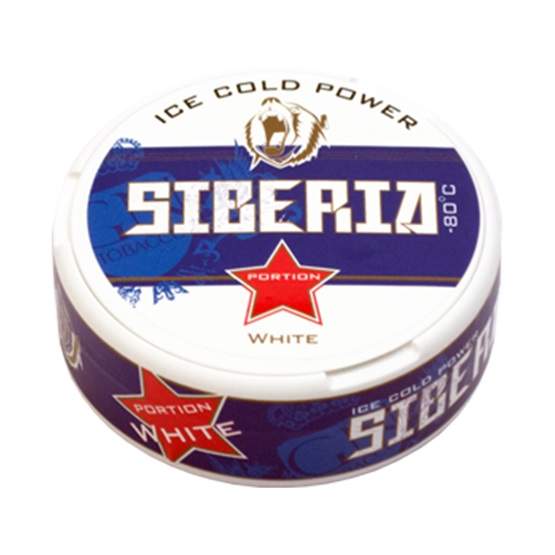 Siberia -80 degrees white dry Blue Label – Strongest nicotine experience on the market in dry portions and with lower moisture content in the snus. Normal-sized portion format for a familiar snuff feeling behind the lip.