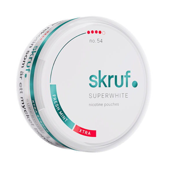 Skruf Super White Slim no 54 Fresh Mint Extra Strong is an extra strong 100% tobacco free snus with a nicotine level of 18 mg/g. Perhaps not a snus for the new snusers out there. The minty flavour gives an icy sensation under your lip and it creates the perfect freshness. If you are looking for an extra strong tobacco free snus then you should definitely give this a try!