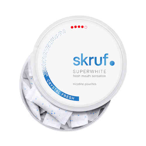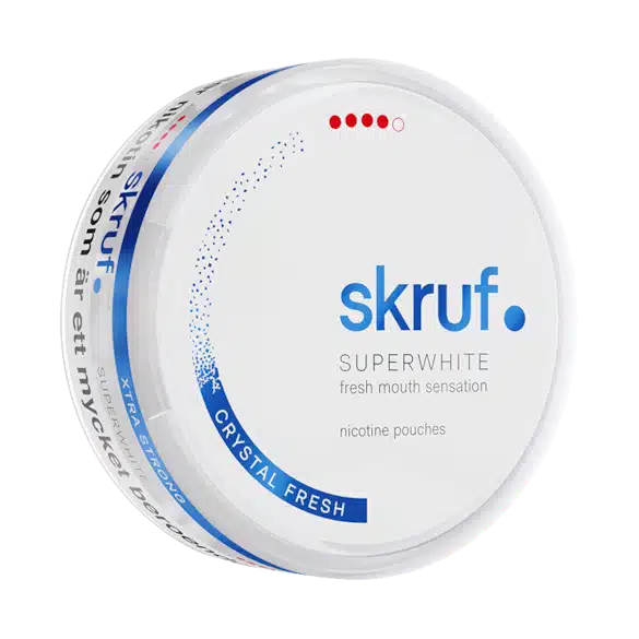 Skruf Superwhite Crystal Fresh Xtra Strong is an extra strong 100% tobacco free snus with a nicotine level of 16,6 mg/g. Perhaps not a snus for the new snusers out there but maybe for a moore experienced user. The minty flavour gives an icy sensation under your lip and it creates the perfect freshness. If you are looking for an extra strong tobacco free snus then you should definitely give this a try!