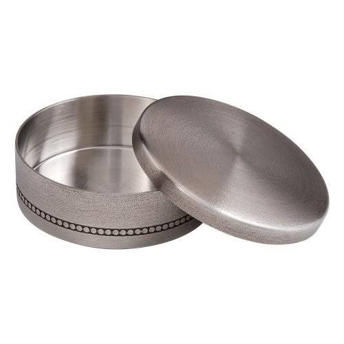 Snuff Box With Decoration, Pewter – Snus storage can for portioned snus made of tin and has an engraved pattern around the side.