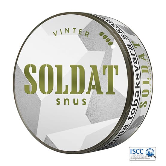 Soldat Vinter Original White Portion gives a cool feeling but is lightened up with clear and fresh tones, now in normal sized portions. The new updated can is marked with ISCC, which means that it is made from pine oil and the manufacturing process is done completely without fossil energy.
