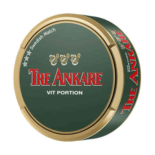 Tre Ankare is a white portion snus with a slightly larger pouch in the Large format, which is dry on the surface but moist inside to reduce leakage. The nicotine strength is classified as Normal, with 7 mg of nicotine per pouch and a nicotine content of 0.8%. A can of Tre Ankare contains 24 pouches.