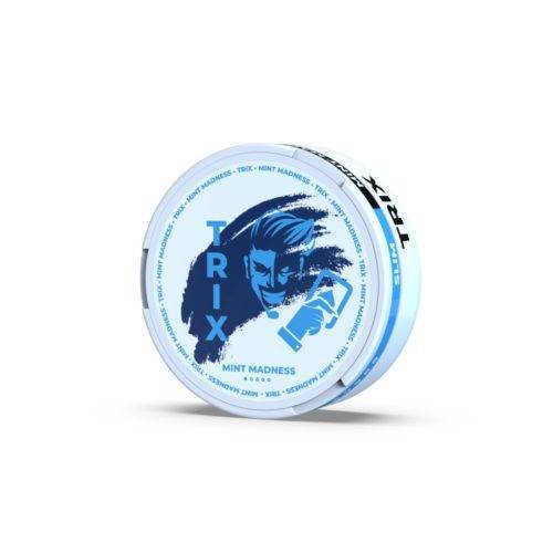 TRIX Mint Madness White Slim Portion 10mg/g – Feel the fresh and cool taste of mint combined with spearmint and menthol! The well-balanced moisture gives a quick release of both flavour and nicotine. The slim-sized nicotine pouches fits well and discreet under the lip.