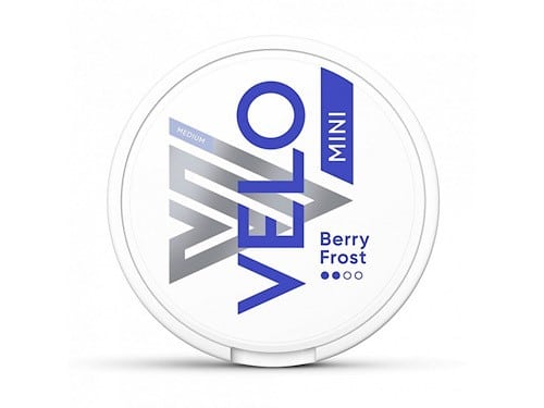 VELO Exclusive Mini Berry Frost – A Small nicotine pouch that fits very discreetlyunder your lip. Here with a sweet taste of berries with a dash of cold to it.