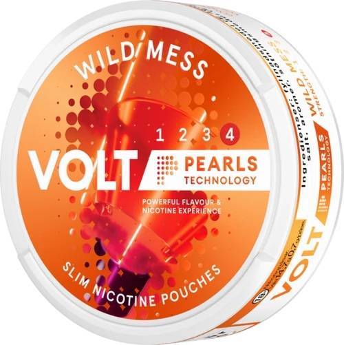 VOLT Pearls Wild Mess Slim –This Extra Strong snus from VOLT has a tropical taste with balanced fullness. Wild Mess is a snus with new release technology (Pearls Technology®). The long, narrow, all-white nicotine pouch is filled with small beads.