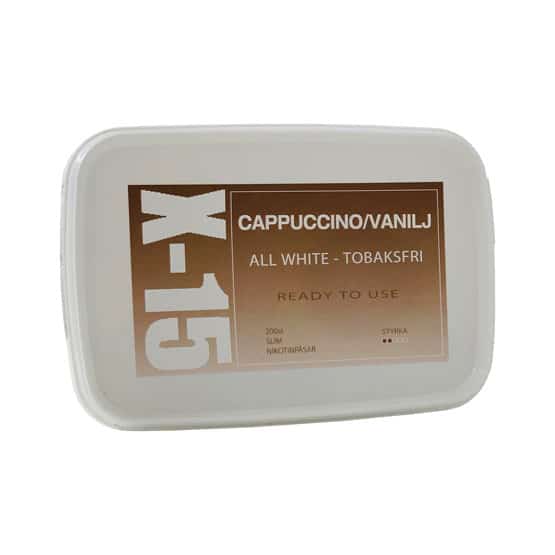 X-15 Cappuccino Vanilla has a creamy taste of coffee and vanilla. A nice everyday pouch with a moderate nicotine level of 4 mg/g. Each box contains 200 nicotine pouches, and a can is included in each box.